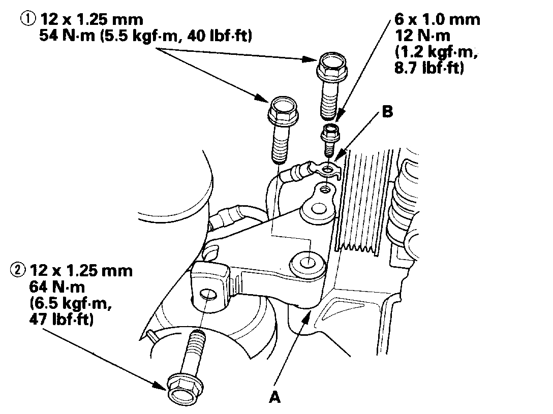 24. Install the side engine mount bracket (A), then tighten the bolts in the numbered sequence shown.