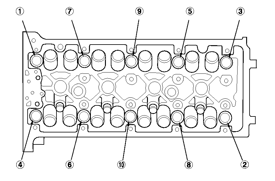 10. After torquing, tighten all cylinder head bolts in two steps (90 ° per step) using the sequence shown in step 9. If you are using a new cylinder head bolt, tighten the bolt an extra 90 °.