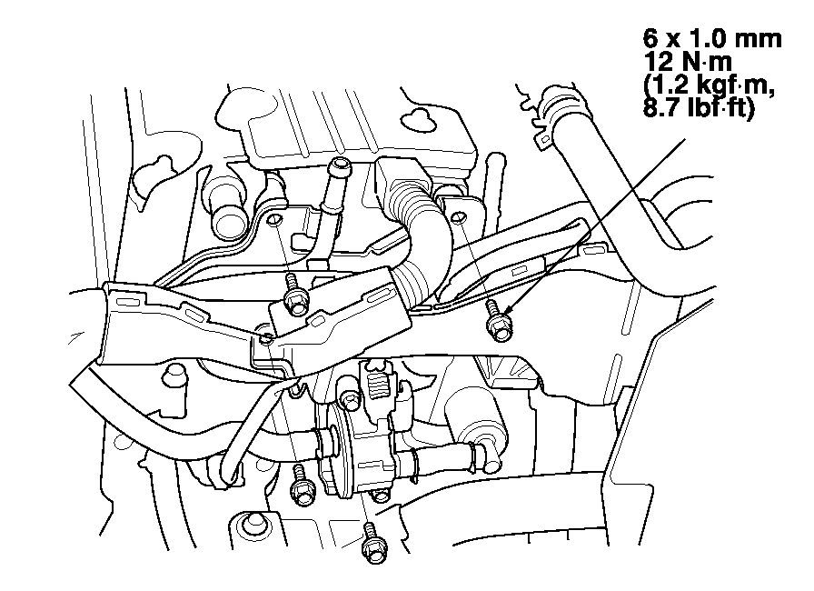 17. Install the four bolts securing the EVAP canister purge valve bracket.