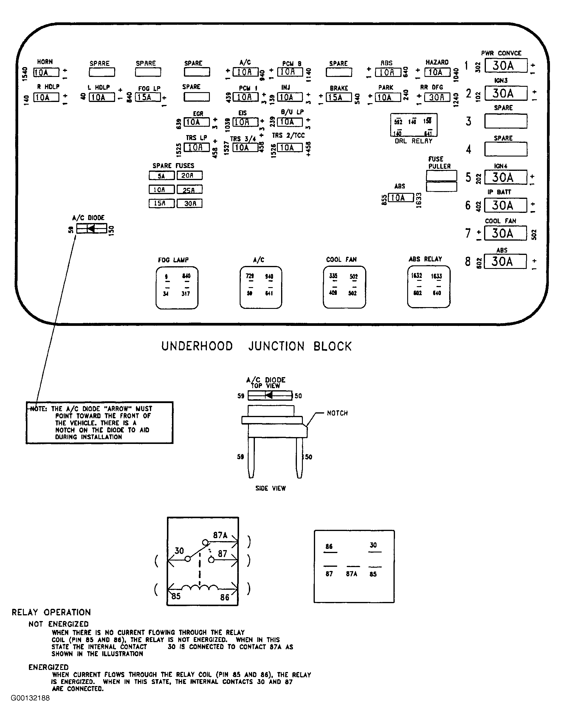 It also would not be a bad idea to check your fuses and relays before testing sparks and fuel pressure. The information concerning the under hood junction block and the instrument panel fuse box is also attached in the images. In particular, look at the fuses for ECM or PCM, INJ, F pump, and IGN. A blown fuse here could definitely keep your car from doing much.