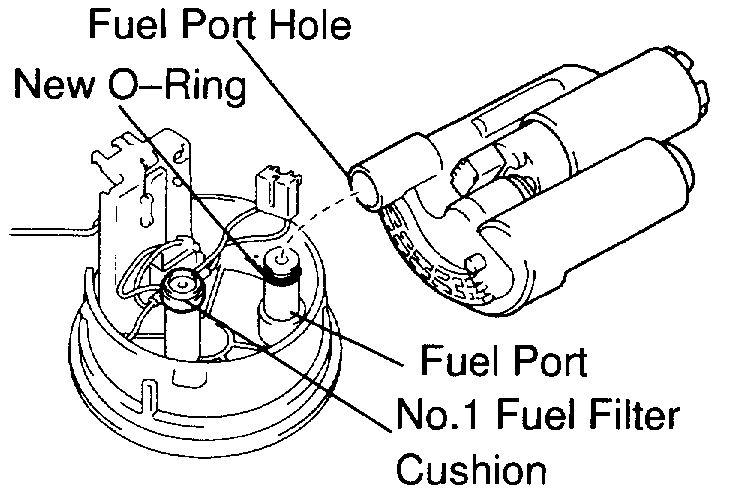 (b)Apply a light coat of gasoline to a new O-ring and install it to the fuel port of the fuel suction plate.