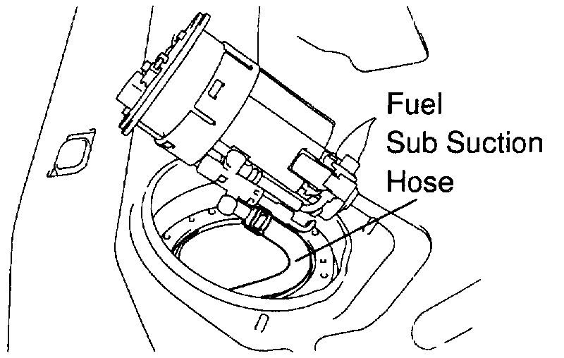 (b)Lift up the fuel pump and sender gauge assembly, and disconnect the fuel sub suction hose from the fuel return jet tube and remove the fuel pump, sender gauge assembly and gasket.