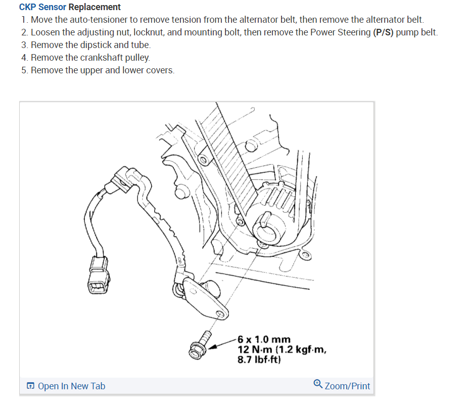 I attached the steps for you for the replacement of the crankshaft position sensor below. It is under the bottom cover for the timing belt at the crank pulley.