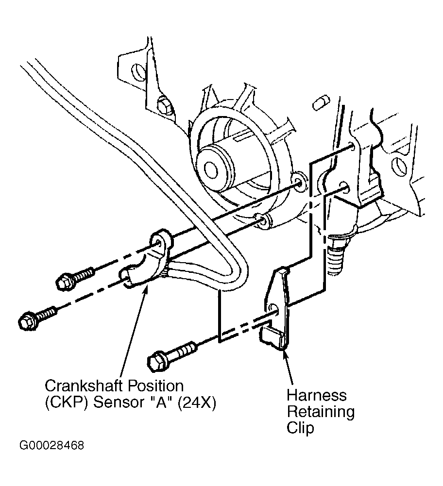 Crankshaft Position (CKP) sensor "A" may also be referred to as CKP sensor 24X. CKP sensor is located behind the crankshaft balancer. See Fig 1. Turn OFF the ignition. Remove the drive belt. Raise and support the vehicle. Remove the lower air deflector. Disconnect the CKP sensor harness connector.