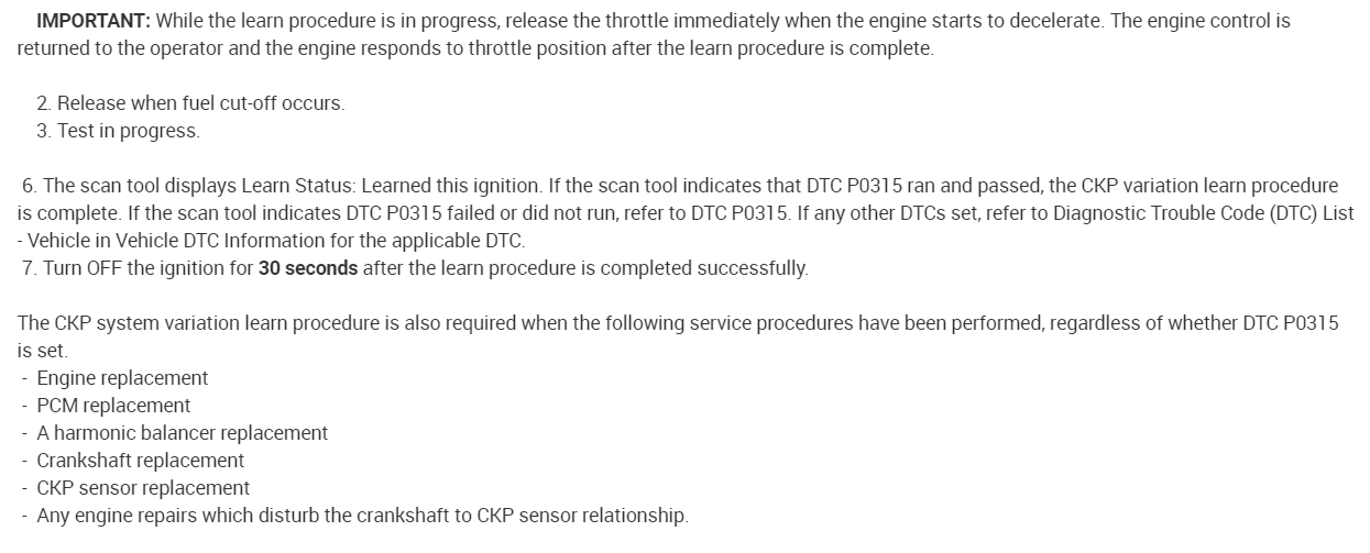 Install the CKP sensor electrical connector. Install right front tire and wheel. Lower the vehicle. Perform the CKP System Variation Learn Procedure. See COMPUTER RELEARN PROCEDURES article in GENERAL INFORMATION.