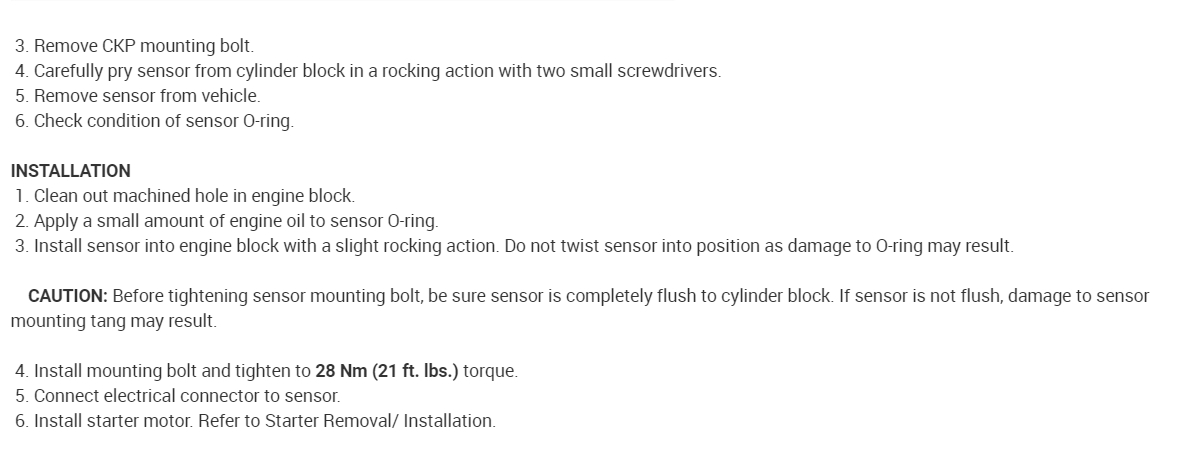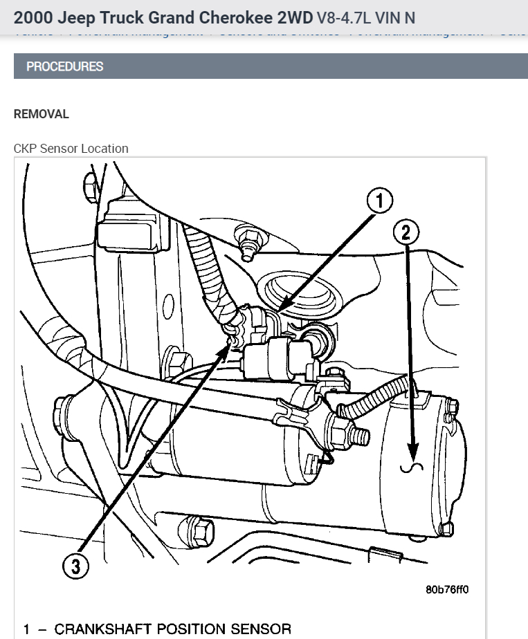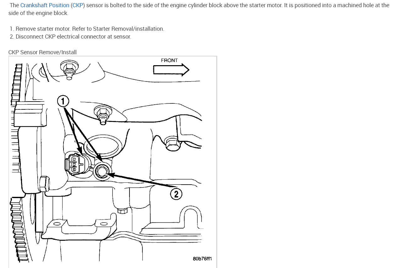 the crankshaft sensor is near the starter motor here is how to change it out. Check out the images (below). Please let us know if you need anything else to get the problem fixed.