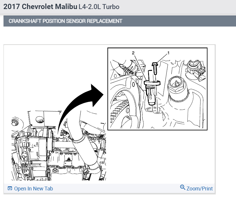 Here is the location of the crankshaft position sensor which is on the right side of the engine behind the starter motor. To begin, disconnect the negative battery cable to power down the system. Check out the images (below). Please let us know if you need anything else to get the problem fixed.