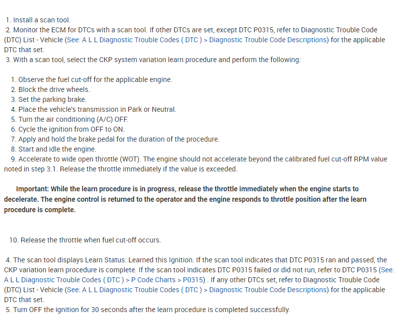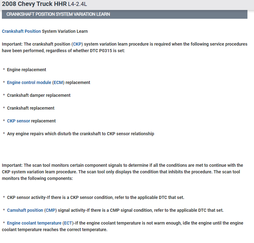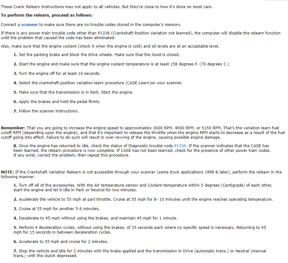 Replaced CKP sensor now need to do the relearn do not have access to scanner and mechanic could not get it until next week.