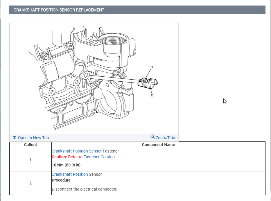 I am attaching the info for the crank sensor. There are no special tools needed for these parts and it is always a good idea to unhook the negative cable when doing work on the engine. However, it is not necessary for these repairs.