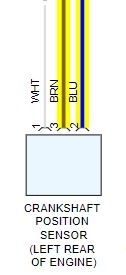 Pin 1 is 12 volts in to the sensor, pin 3 is sensor ground through the ECM. With the crank sensor plugged in pin 3 should be grounded with the key on. Pin 2 is signal to the ECM, should be ac voltage while cranking.
