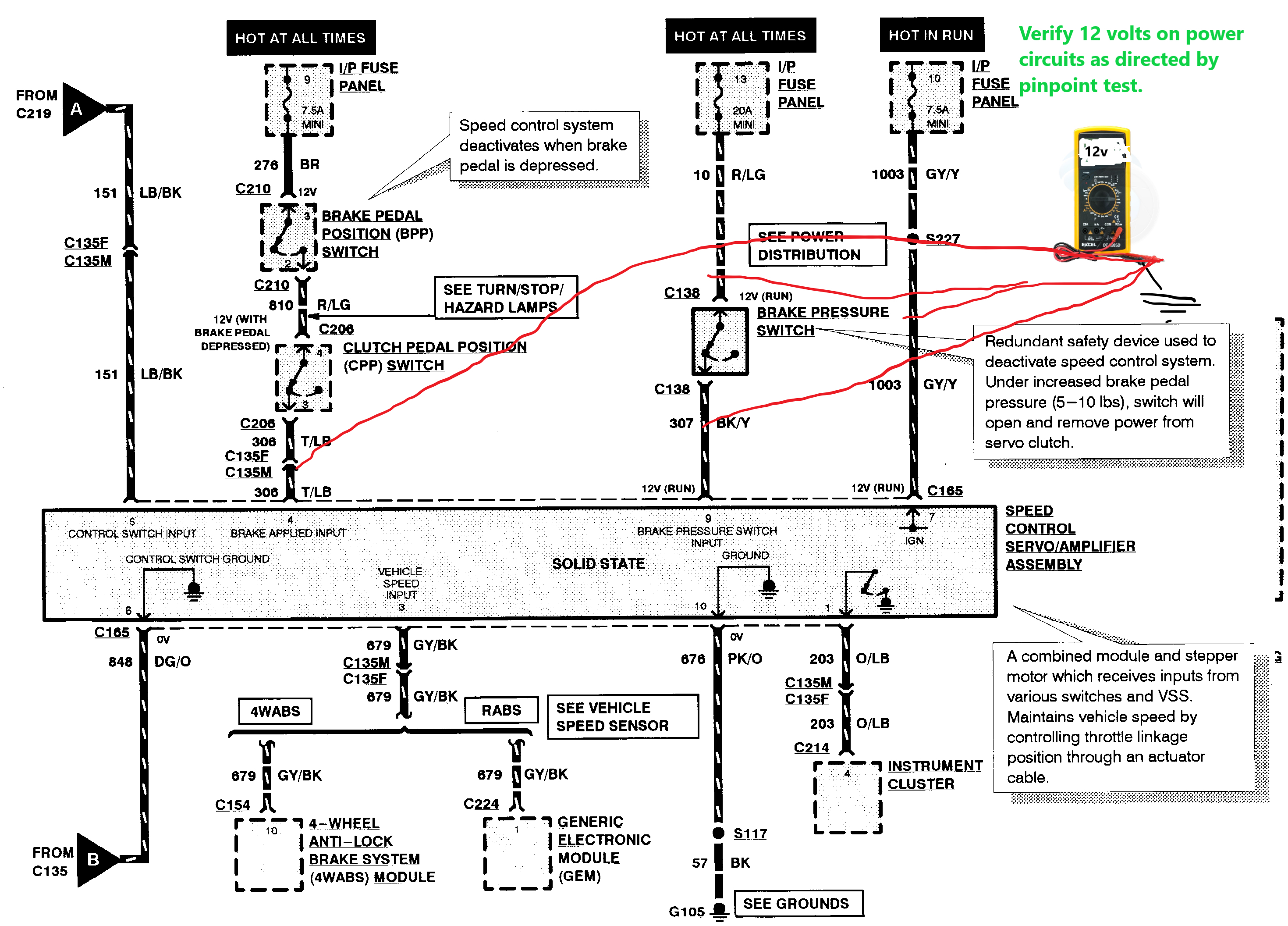Master cylinder switch replaced.steering wheel buttons replaced.all fuses in engine compartment have power both sides.also fuses inside cab left side dash all powered.no cruise control lights or diagnostic flashes at all on instrument cluster.system dead. now,this old truck had a big problem. the 4 wheel drive started flashing on and off and then stopped working completely. three months later the truck shut off because the fuel pump stopped working.after lots of diagnosis {checked all fuel system components} i found broken wires from the cab to the rear along the drivers side frame rail. i repaired 3 broken wires and to my surprise the fuel pump came on. the 4 wheel drive and lots of other stuff started working and i am wondering if maybe another wire in the harness may be broken inside the jacket might be broken, would a wire broken aft of the shut down the whole system? what do you think? thanks, Danny V.