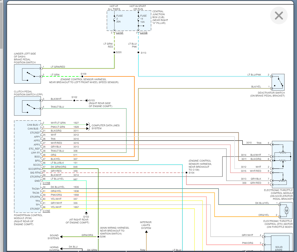 I attached the wiring diagram below, but this is going to tell us if the button is the issue or if we need to suspect the PCM.