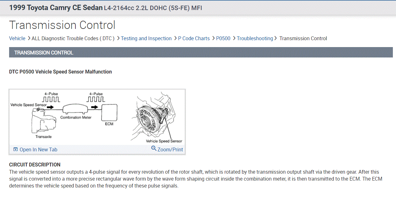 My car developed a problem upshifting and cruise control not working sometimes several months ago. Code is P0500 Speed sensor A. I changed the speed sensor and problem persists. The Speedometer is not malfunctioning and has worked perfectly throughout this before and after I changed the speed sensor. However if I disconnect the electrical connector from the speed sensor then the speedometer does not work at all-- stays at 0 MPH.