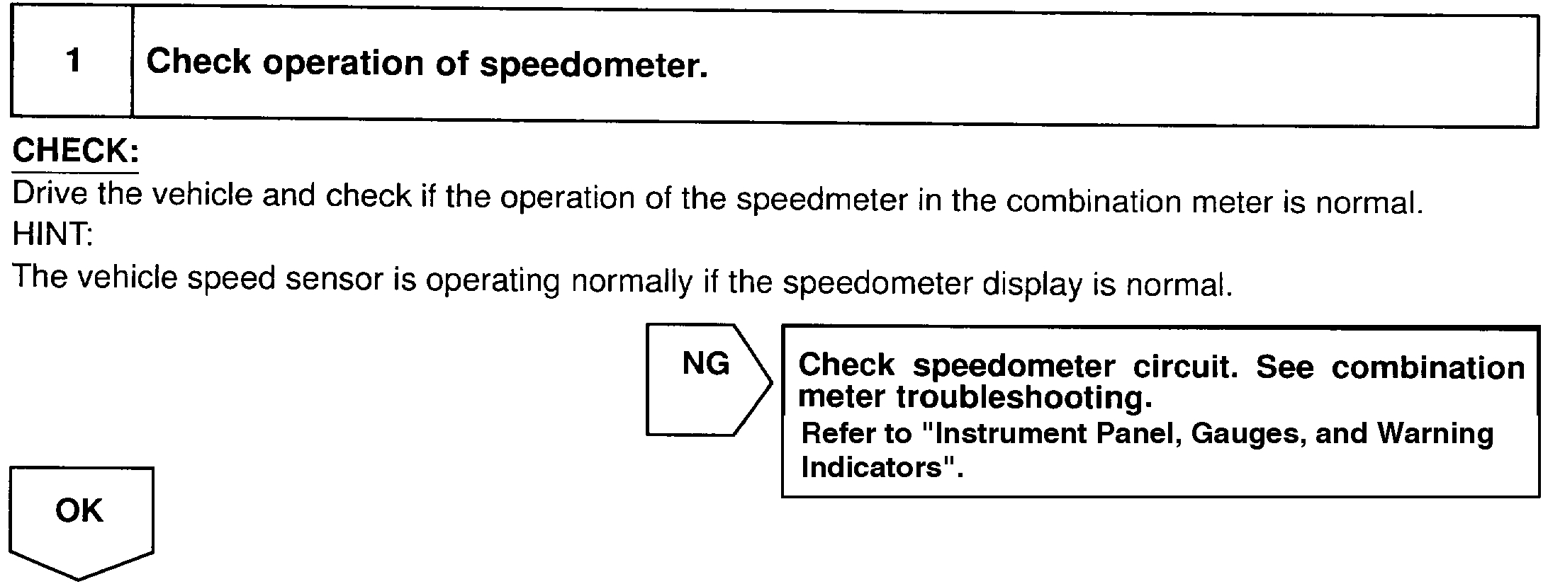 Again speedometer is not malfunctioning. I took the instrument cluster out and inspected the wiring and connectors and they look OK. Next the algorithm said to