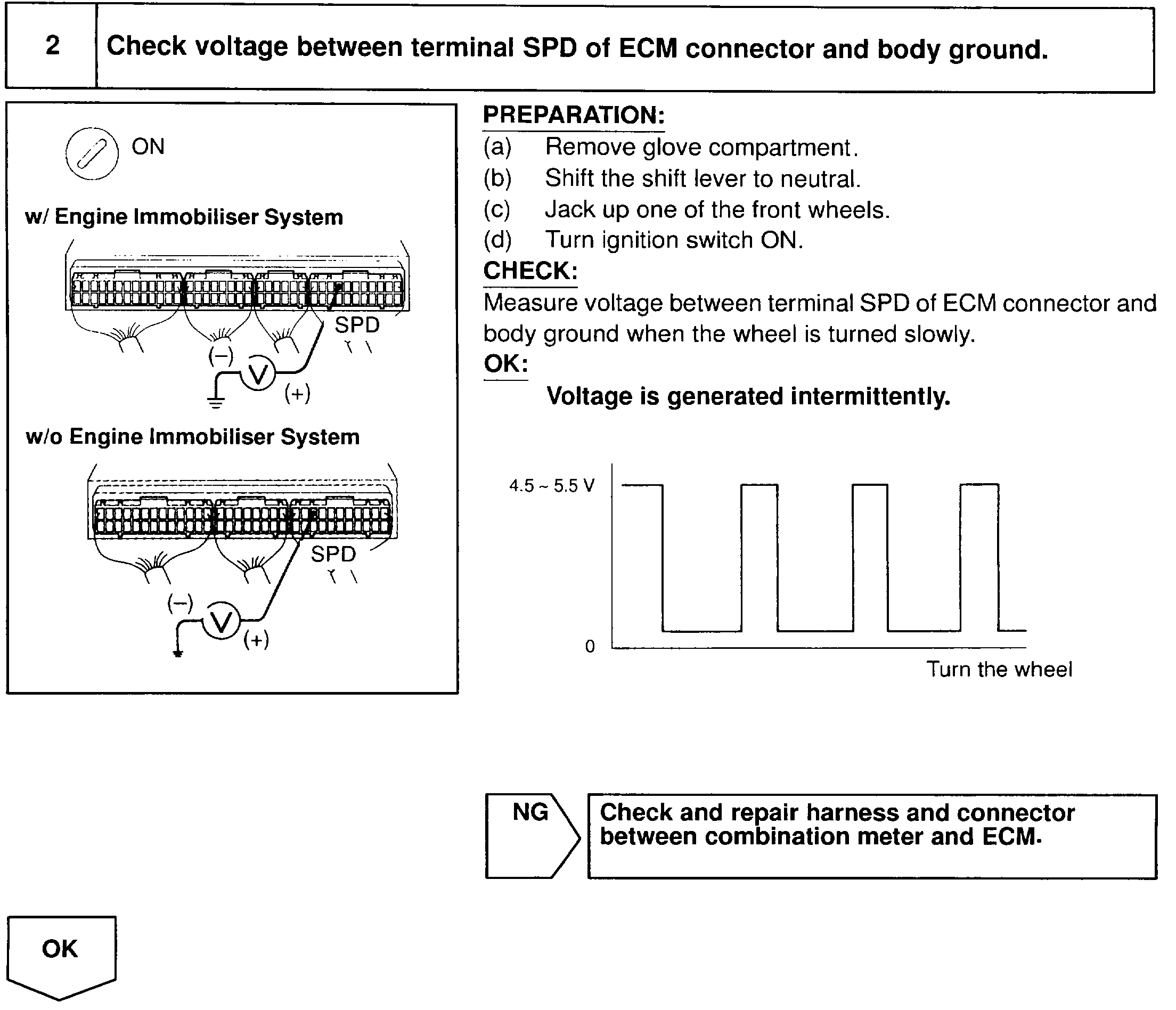 immobilizer system, measure voltage between ground and terminal No. 9