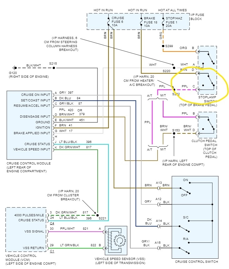 So, it started as the cruise would work but then stopped working, now it doesn't work? Does the indicator on the dash come on when you select cruise? If yes, then the likely issue is the brake switch for cruise control. It turns the brake lights on, but a second section also turns off the cruise when you touch the brakes. They are a common failure item; the replacements are about $10.00. However, to test if the switch is the problem, simply go to the switch and unplug it, then place a jumper wire between the terminals C and D those are the brown wire and the purple wire. Go for a quick drive and see if the cruise works. Drive with the hazards on though as you won't have brake lights during the test. If the cruise now works, remove the jumper and plug the switch back in until you get a replacement. You could also jump the wires using probes or a jumper pushed into the back of the switch, but it moves so that it could fall out. Replacement isn't difficult, you remove the wiring connector, then the retainer from the pin and then the switch unsnaps from the push rod and comes off. The new one goes on by reversing that process. No adjustment needed.