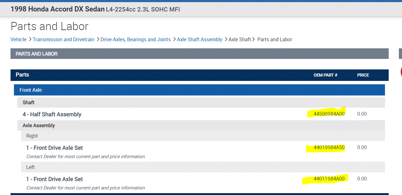 One item about changing them out, double check the axle that you get to be sure it's correct. More than once I have gone to swap a Honda CV and gotten the wrong one. On many models the automatic and stick shift parts are very close in size, about a half inch different. Hard to see without setting them side by side. That difference doesn't sound like much, but I have seen them bottom out when the car hits a large bump, that can do serious damage if it happens a few times.