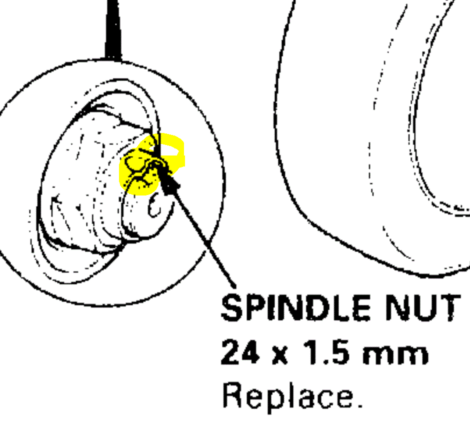 Also, if it is the spindle nut, there is a spot at the end where there is a place where it is staked into the threads to prevent it from moving. Make sure that it is pried away from the threaded portion. See pic 1.