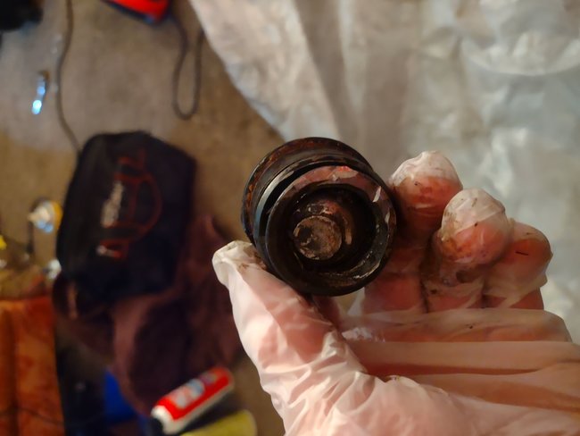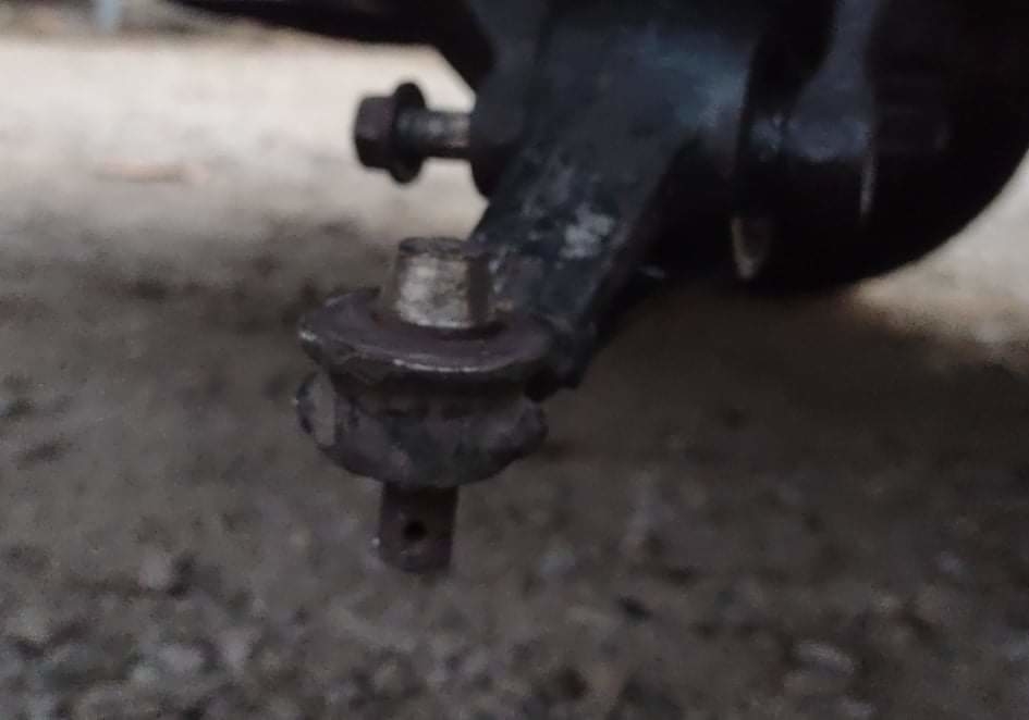 I removed the snap ring from the top of the ball joint, but it snapped off when it gave out so the bottom part where the castle nut and cotter pin goes is still attached to the lower control arm it's in there pretty good. I've been lubricating it, slamming the side of the control arm with a hammer, and even put naval jelly on there since it was pretty rusty... Hopefully I cleared up anything. Here are a couple more pictures. thank you in advance.