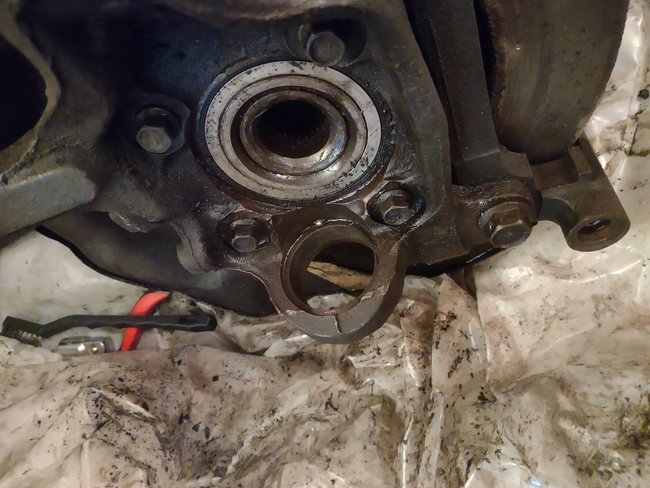 Okay, here is my progress: I have the ball joint out of the knuckle ready for the new one to go in. The spindle nut came off very easy with air tools thanks... Problem I'm having is in the pic sorry about the first picture couldn't figure out how to delete it.