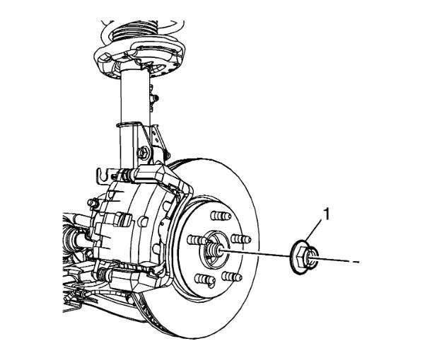 6. Remove the wheel drive shaft nut (1) and discard.