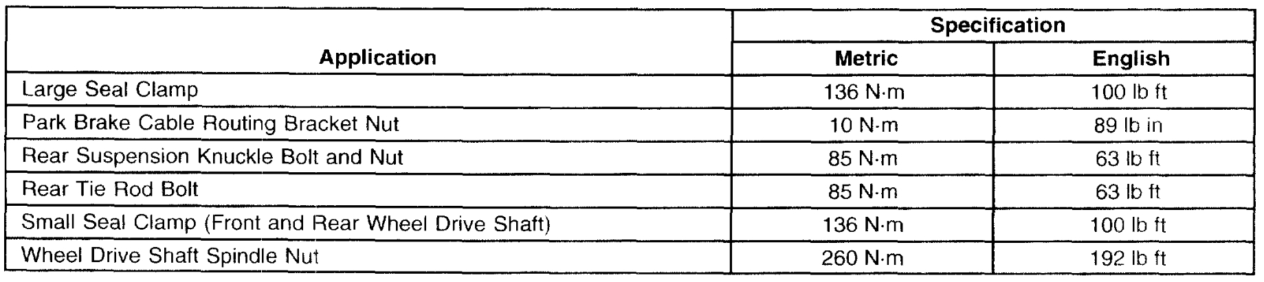Torque spec on front CV axle bolt.