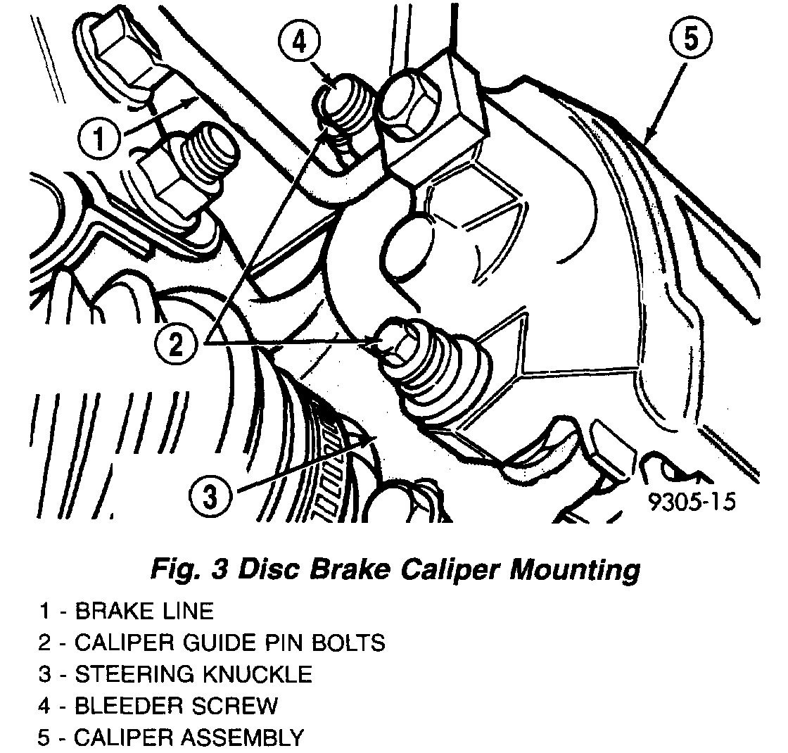 (3)Remove the front caliper assembly from the front steering knuckle assembly (Fig. 3).