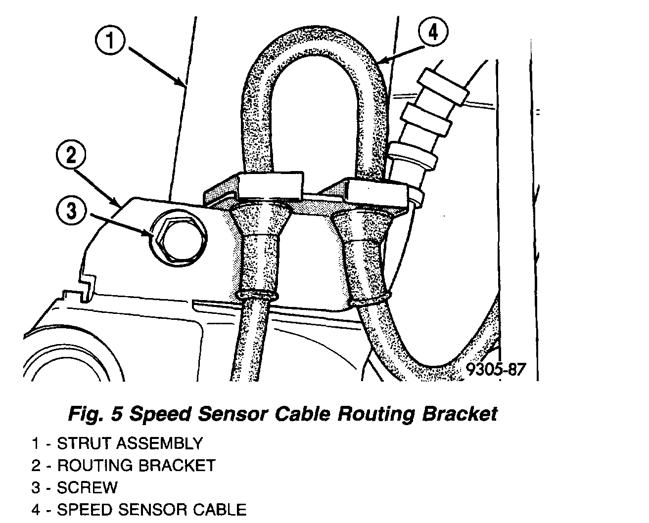 (5)Remove the speed sensor cable routing bracket from the strut assembly (Fig. 5).