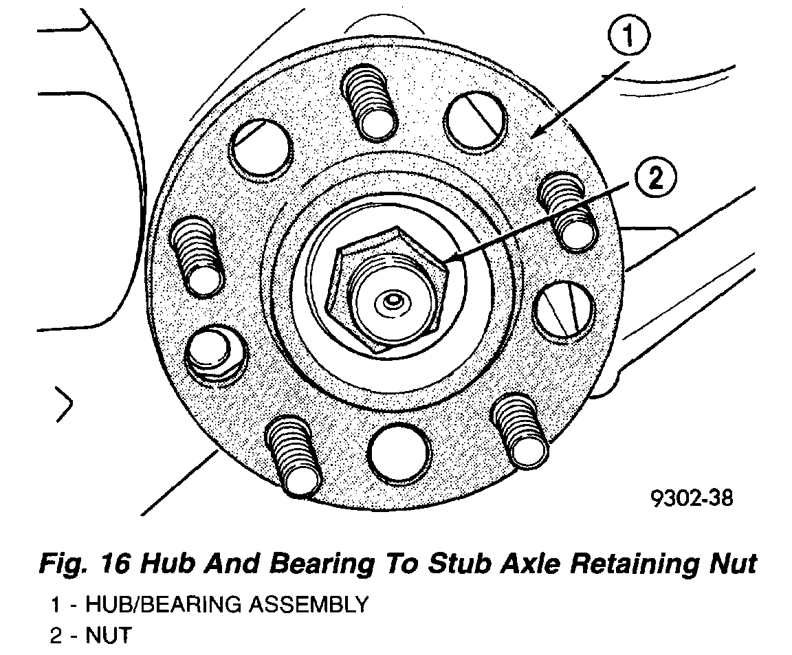 CAUTION: When tightening hub and bearing assembly to stub shaft retaining nut, do not exceed the maximum torque of 142 Nm (105 ft. lbs.). If the maximum torque is exceeded this may result in a failure of the driveshaft.