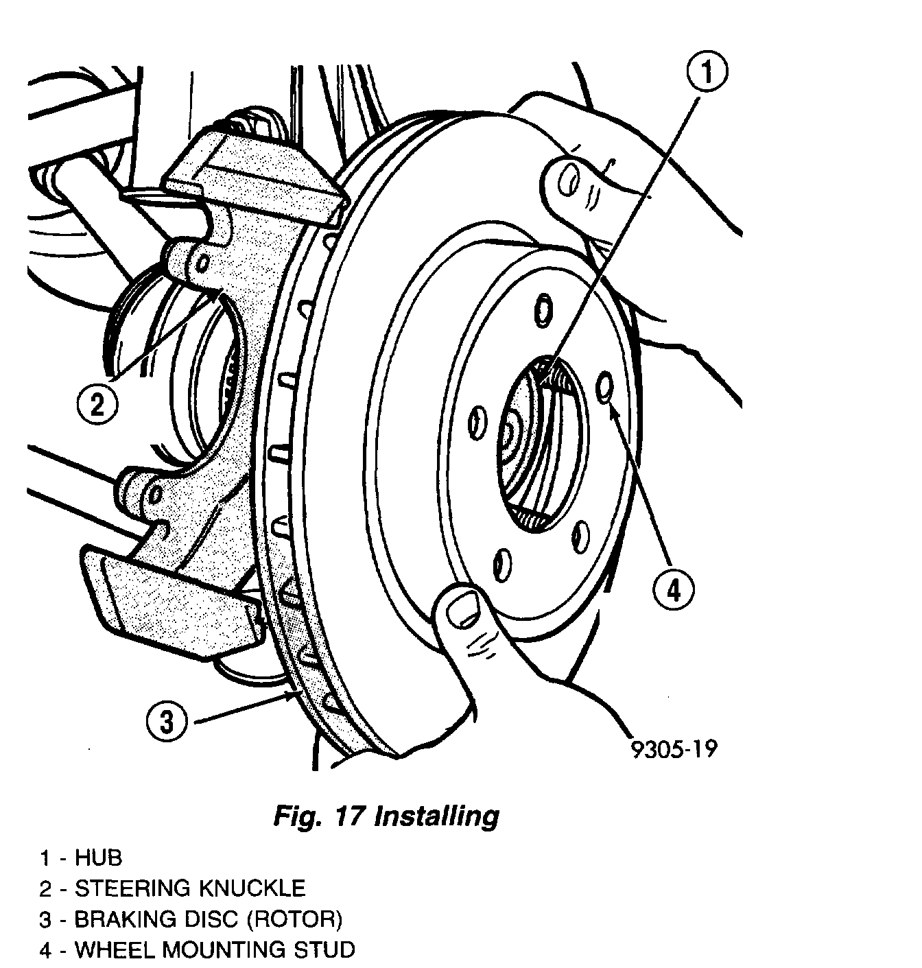 (10)Install the braking disk on the hub and bearing assembly (Fig. 17).