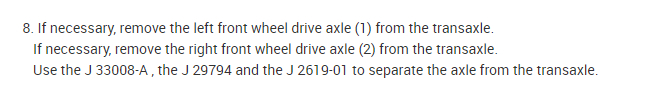 I attached the directions below for replacing a half shaft (CV Axles). There is one set of directions that is used for both sides.