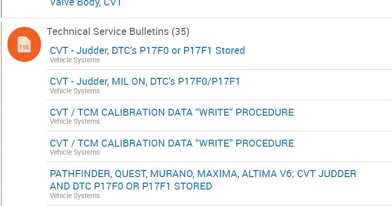 If you look below, I listed all TSB's related to the valve body. Note they are based on codes. Also, there is a TSB related to recalibration between the TCM and the CVT transmission. If you have something different, let me know.