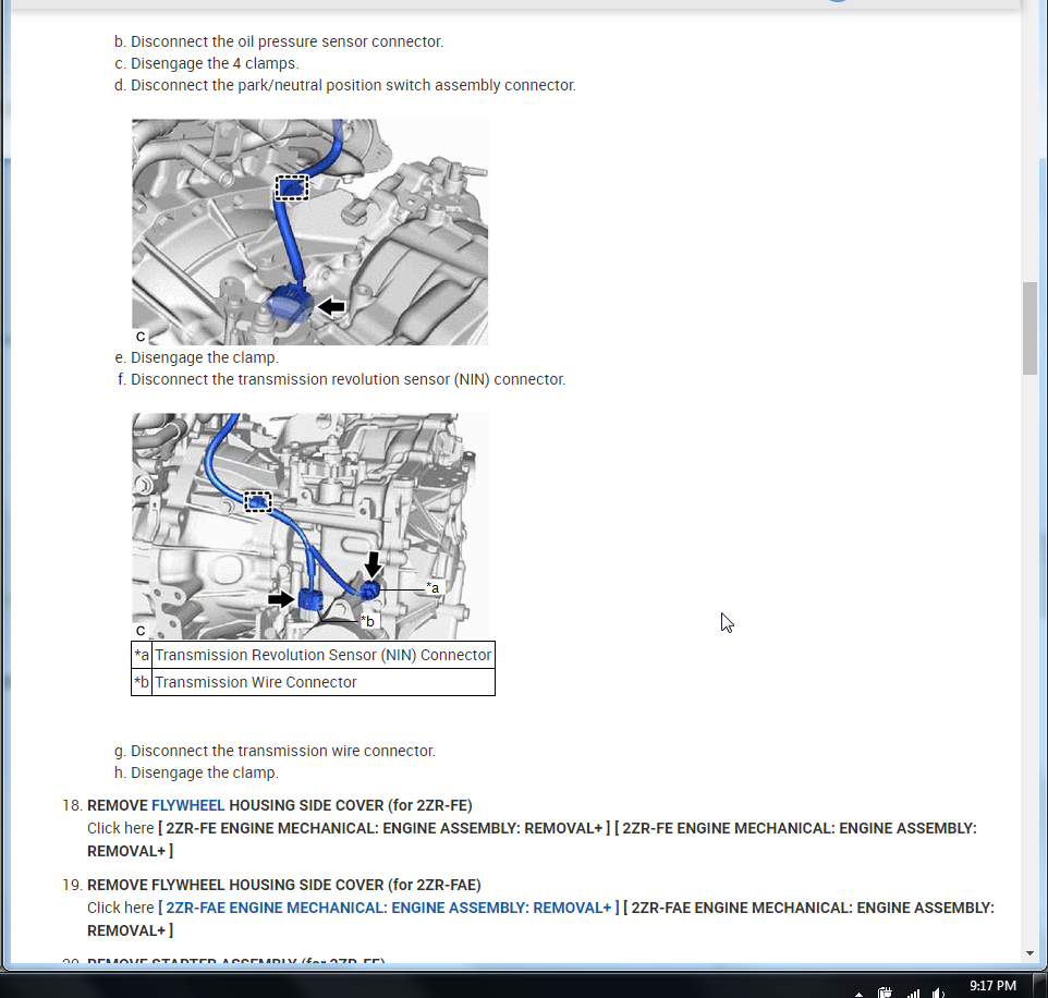 No problem. Here are the instructions from the manual that will help with replacing the transmission on this vehicle.