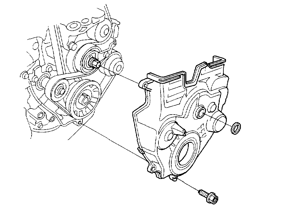 17. Lock the timing belt adjuster arm in place with one of the 6 mm timing cover bolts.