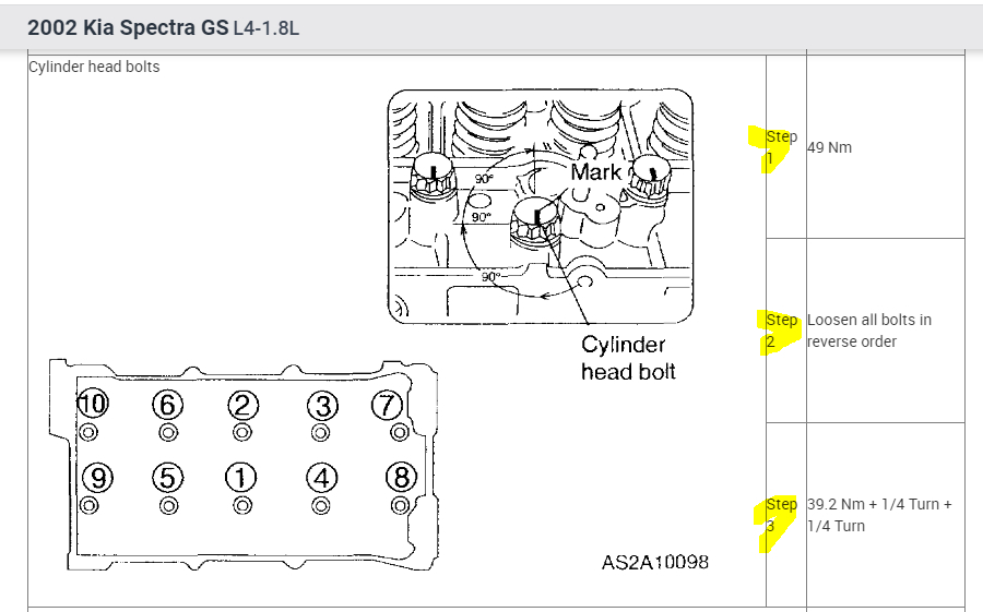 I attached the torque specs below related to the cylinder head. Make sure to follow the sequence indicated. Also, the torque should be done in three steps. See the area that I highlighted.