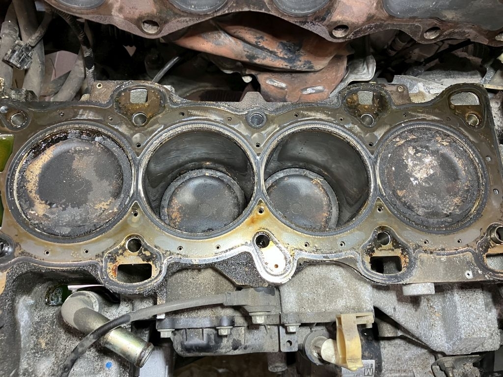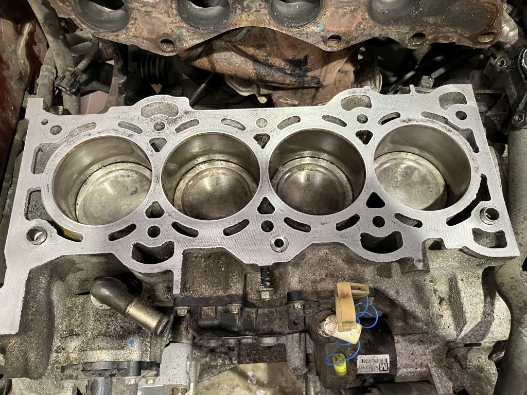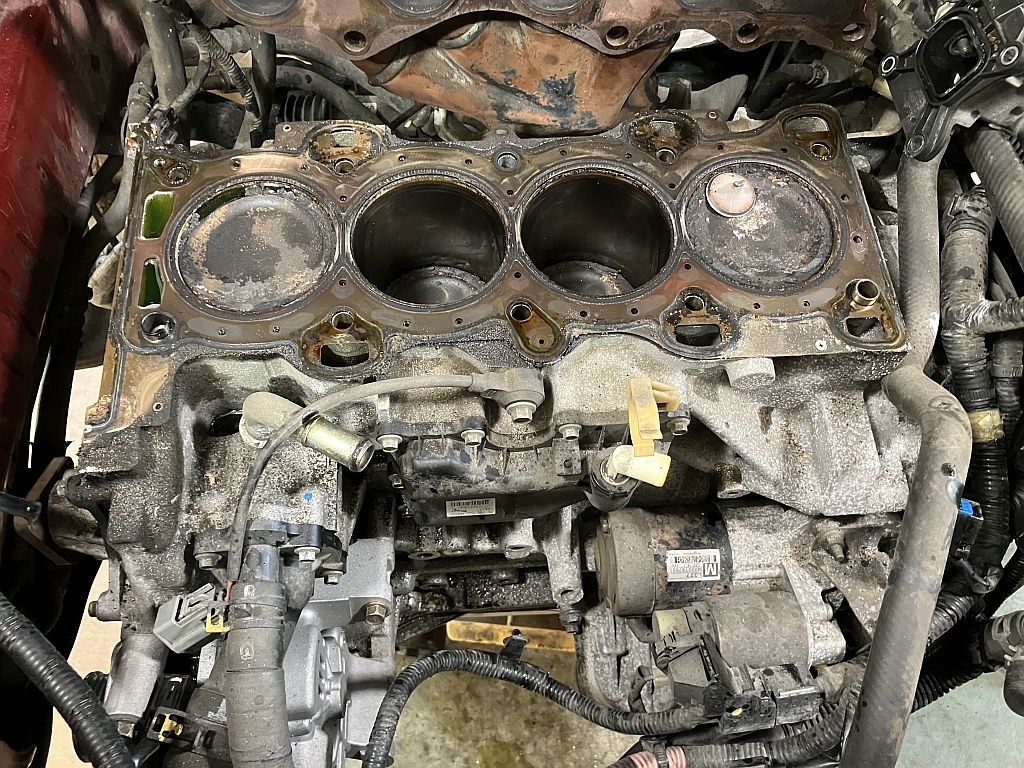Of course, the engine wouldn't start and after replacing the battery, alternator (not sure why it was seized), belts the engine still wouldn't start. It was then I saw that the engine wasn't turning over during starting. When I pulled #4 spark plug out, the electrode was crushed, and ceramic was missing.