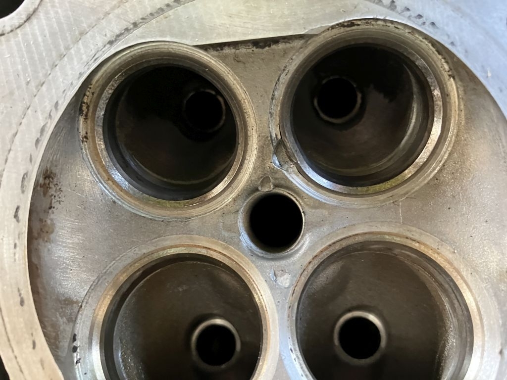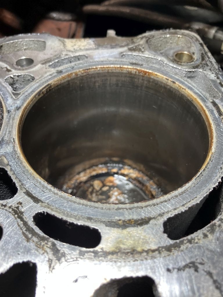 While the engine was idling one of the cylinder valves (not sure whether intake/exhaust) broke and fell into the bore of the cylinder.
