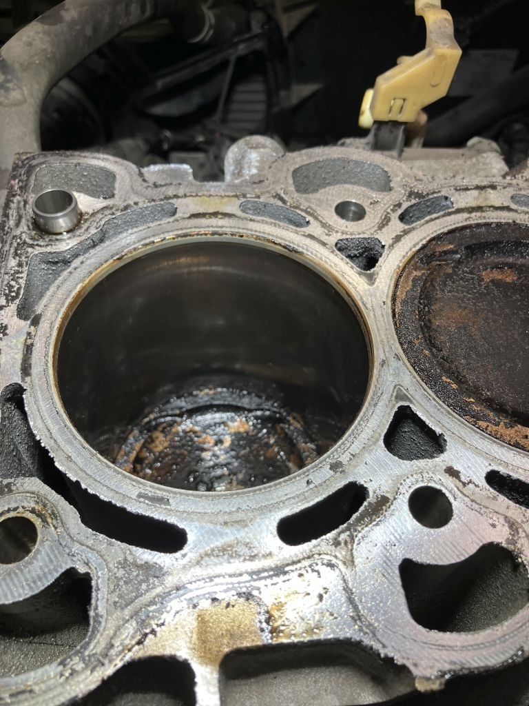 Using a borescope, I could see the ceramic debris and valve sitting on the top of the piston.