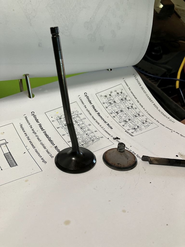 Can you guide me through cylinder head removal and replacement of the broke valve?