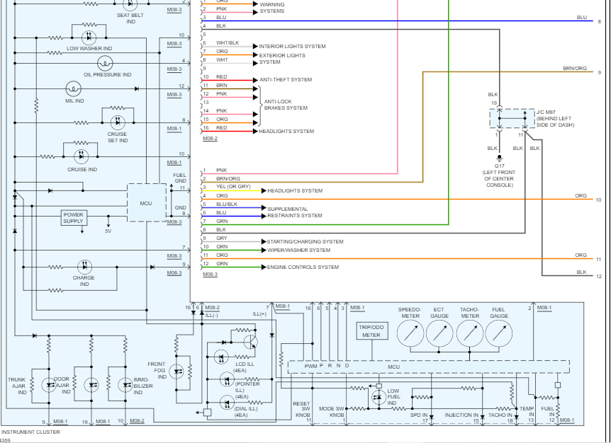 I'm not sure which fuse you are having issues with. So, I attached the instrument cluster wiring schematic below. There were only two pages of schematics. However, I had to cut each one in half to make it readable for you. I did overlap the two so you can follow from one to the next. Additionally, I highlighted the wires involved. Pics 1 and 3 will be the most helpful for you.