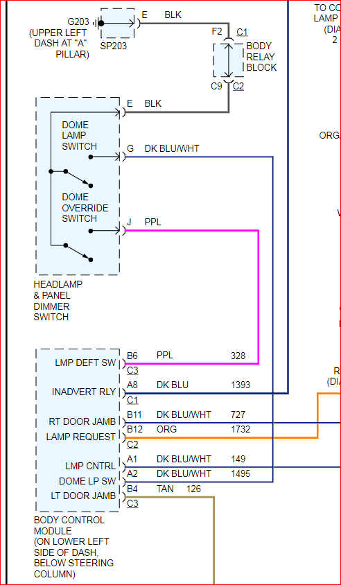 I also attached the dome light wiring diagram and I noticed that the dome switch is an input to the Body control module. The BCM then sends its signal to the cluster.
