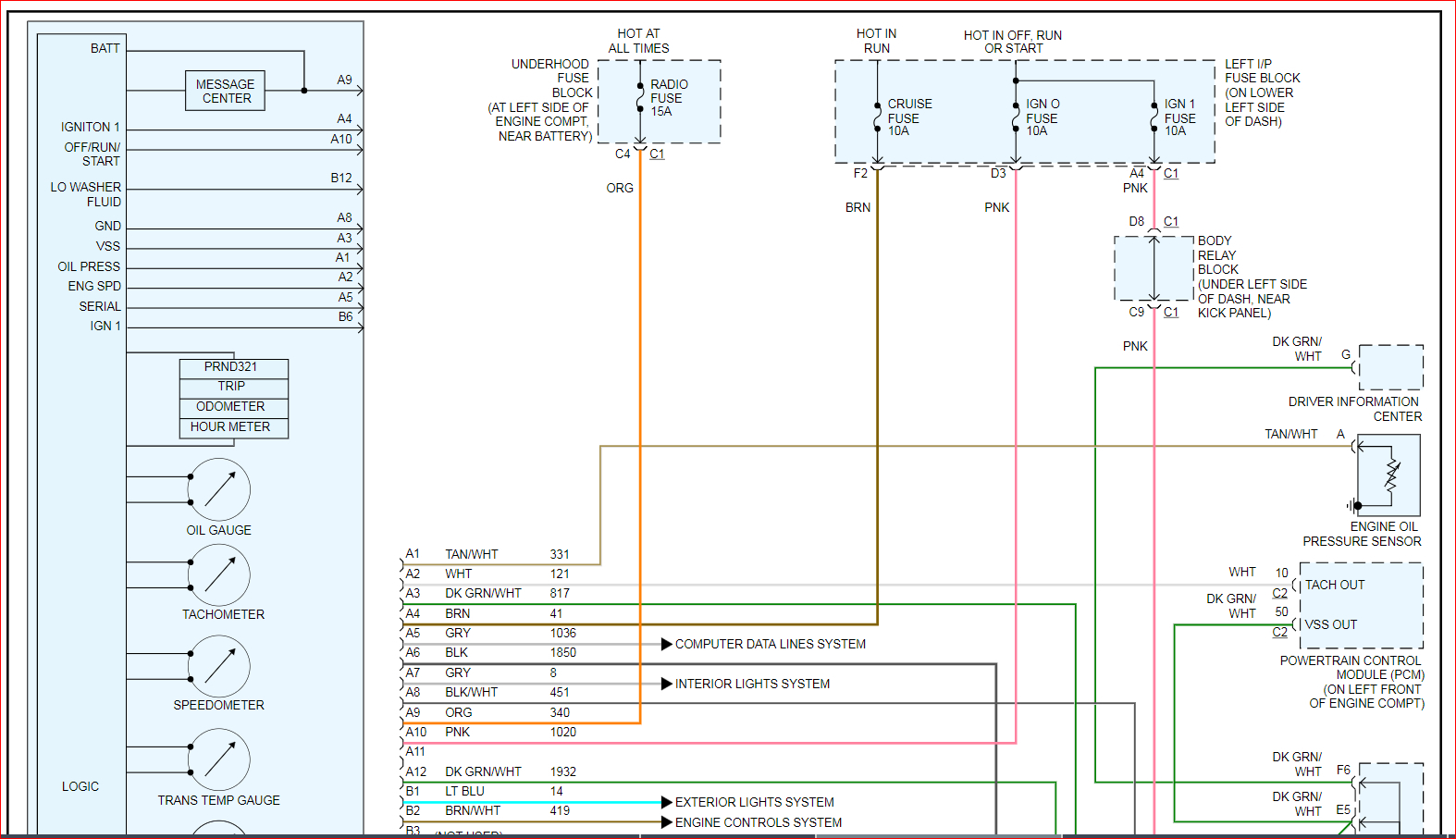 Also, the cluster gets all its gauge inputs either directly from the sensor like the oil pressure sensor, or from the controlling module. An example here would be the PCM sends the tachometer signal that it receives from the vehicle speed sensor. So the PCM does the calculation and just sends a signal for the tachometer and the cluster just displays what it receives. This is important because if nothing in the cluster is working then it is most likely something with the cluster itself because the chances are almost 0 that all your inputs would be bad.