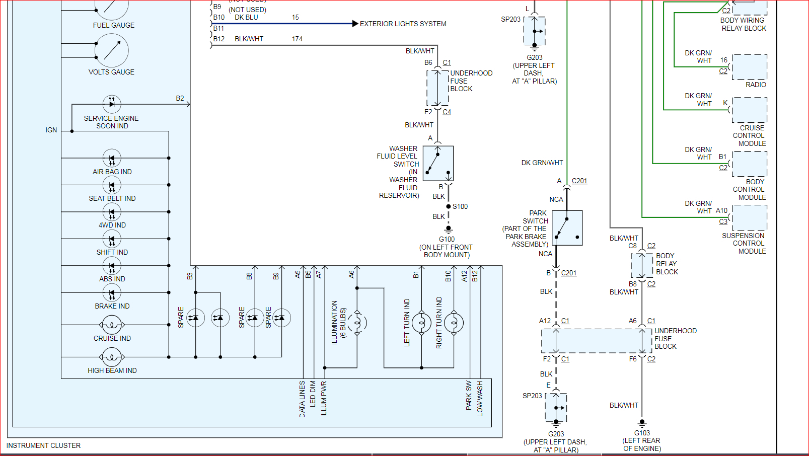 So let me know what your voltage readings are and where then also verify you have a good ground for the cluster. It appears the ground for this is G100 and I attached a location for that as well.
