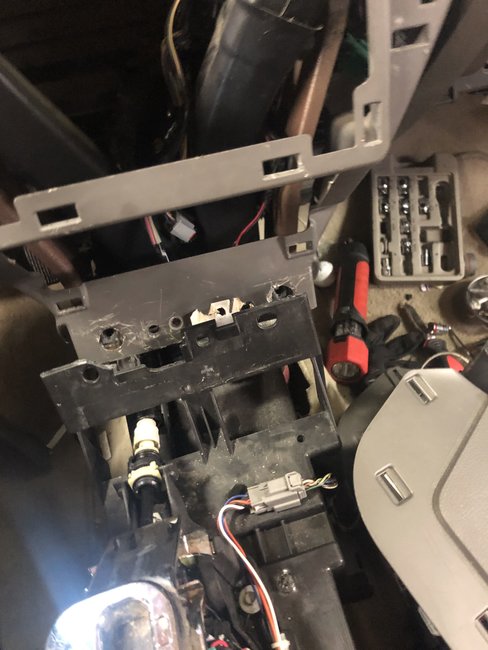 18. Remove the screws from the front inner floor console support-to-instrument panel.