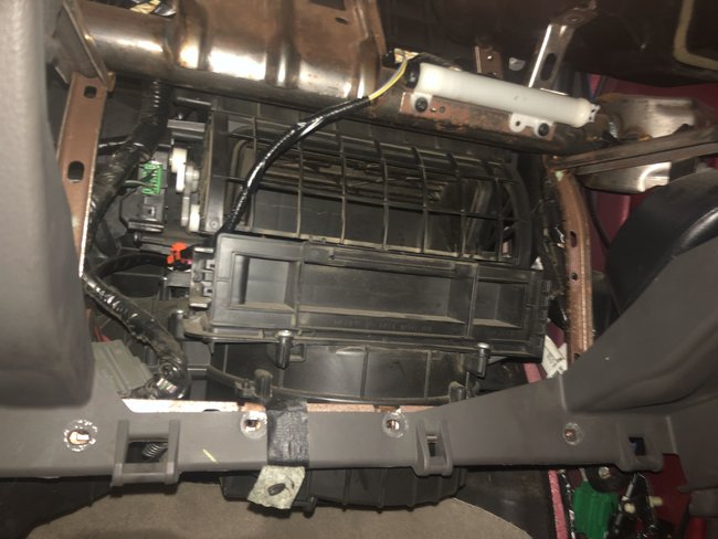 Here are some pictures. I tried to show the clips that keep it attached. The ones that can be seen are above the glove box. The problem is one that I saw seemed to have a nut attached at the end and it was pretty impossible to get off. I have a few more pictures, but I am converting them from my iPhone format to .jpg so I can upload them.