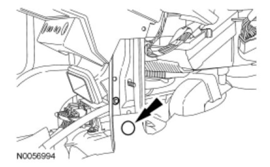23. Remove the LH pushpin retainer from the instrument panel-to-A/C duct.