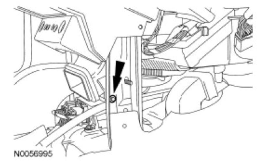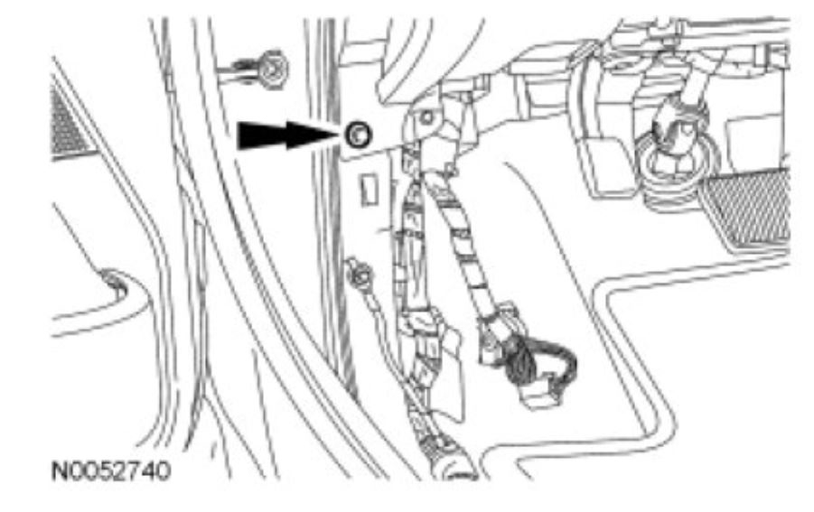 34. Remove the 2 LH instrument panel bolts from inside the LH door opening.