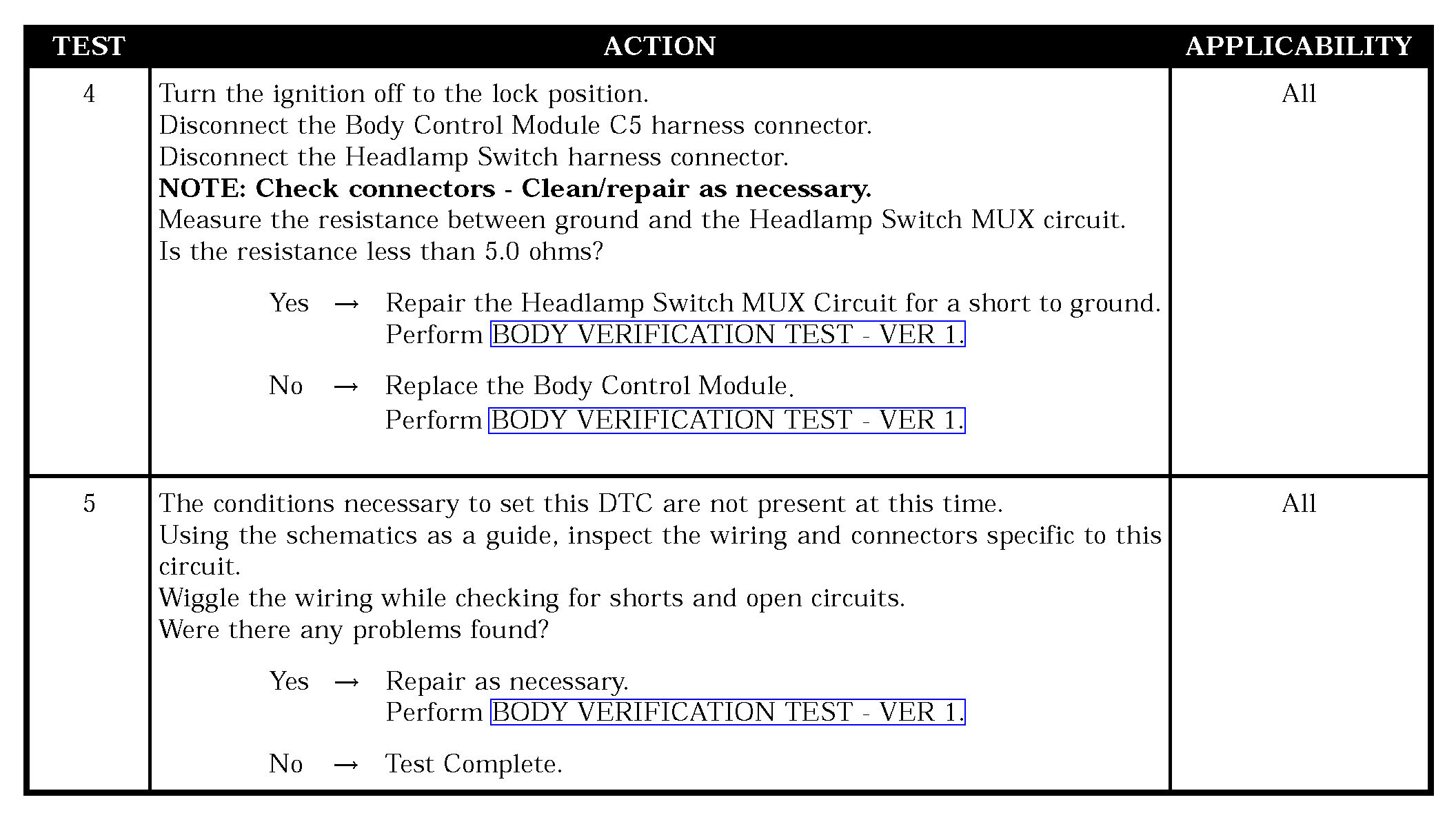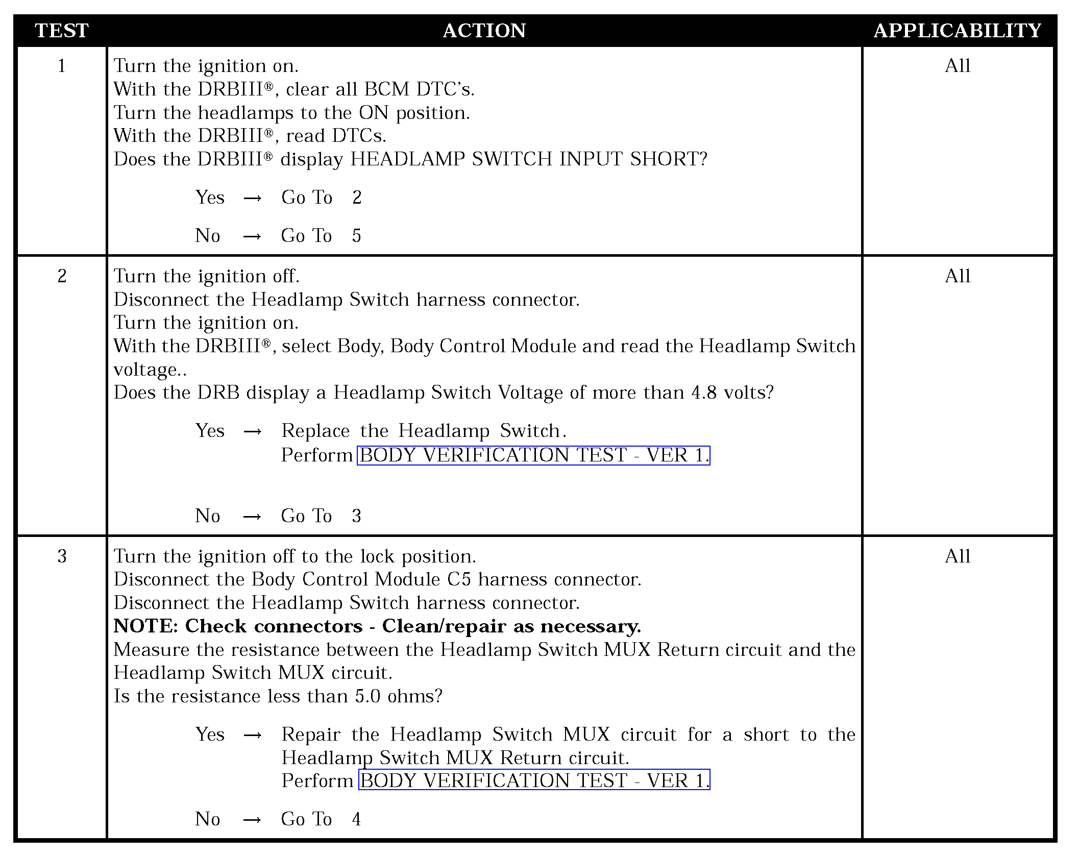HEADLAMP SWITCH INPUT SHORT-BCM