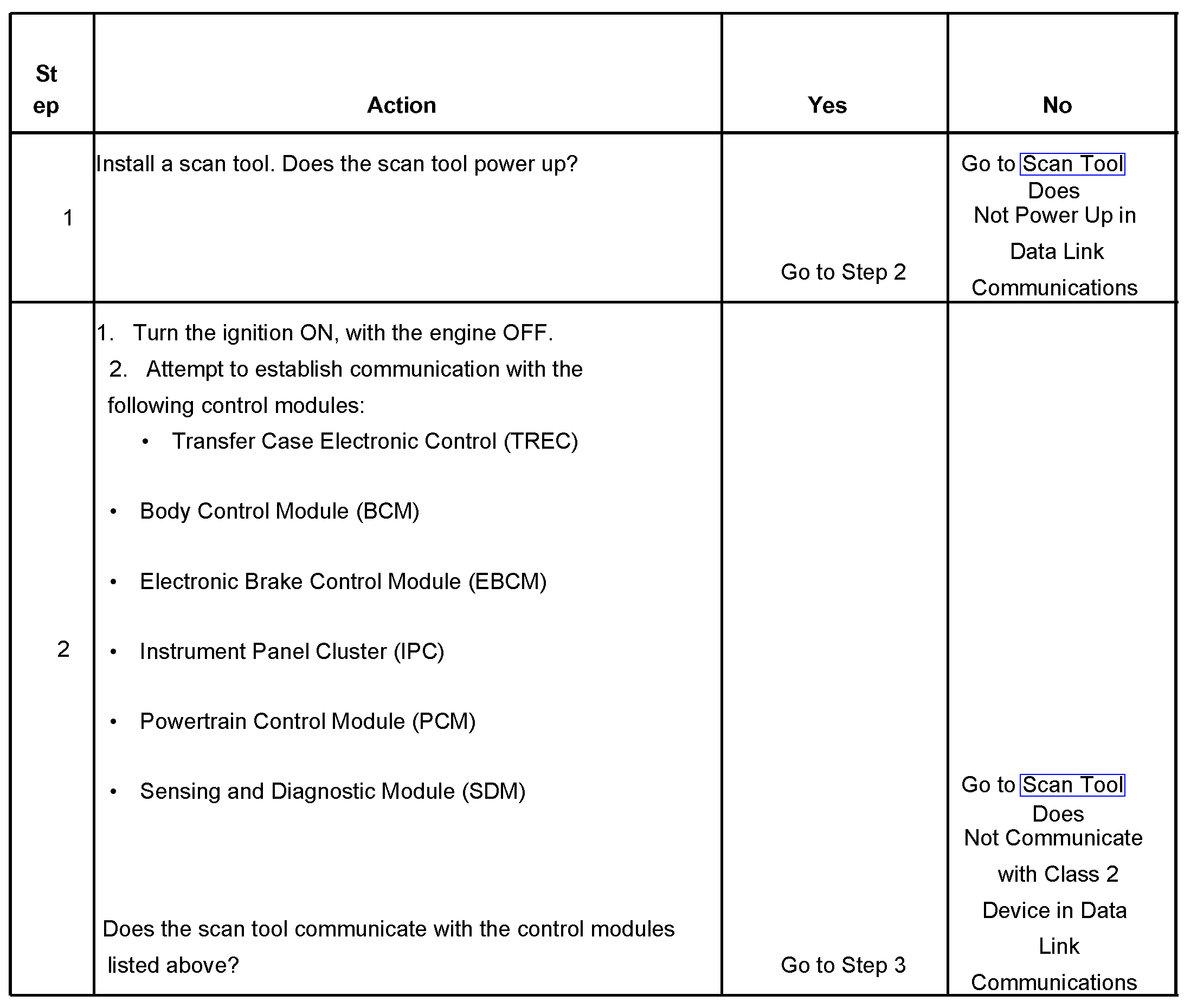 2. Lack of communication may be due to a partial malfunction of the class 2 serial data circuit or due to a total malfunction of the class 2 serial data circuit.