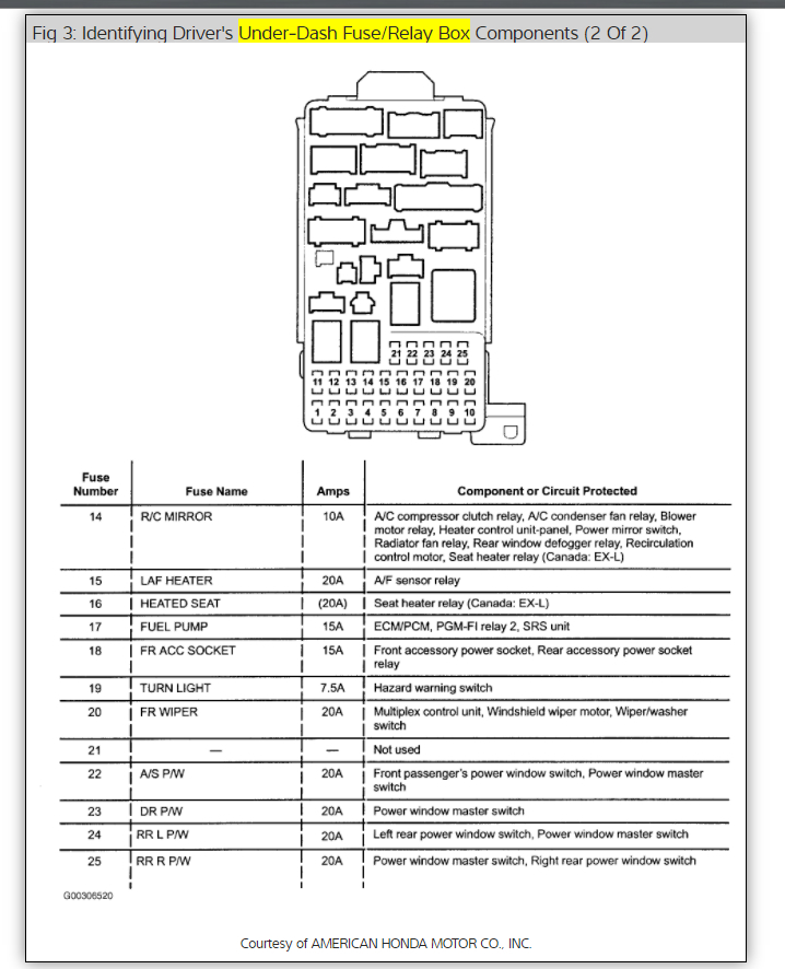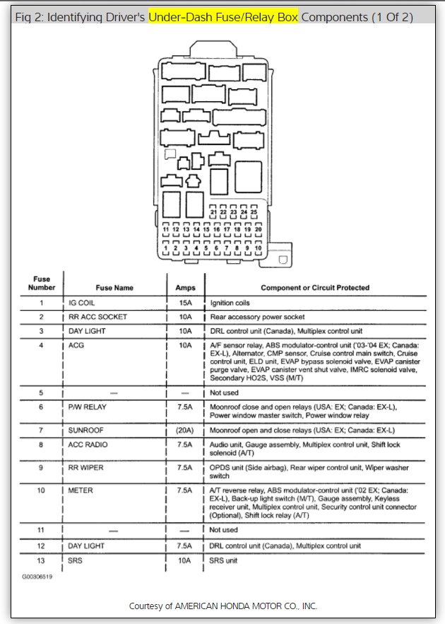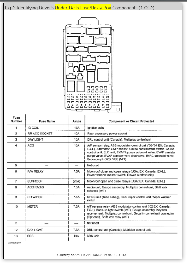 Could the relay Ken mentioned above have anything to do with it? Or would the fuses I replaced not have worked at all if it was the relay? I'm just so frustrated. (My highlander dumped all its oil last month. Thankfully the part was under extended warranty, but still had a minor panic attack until we knew. And this crv had an immobilizer system issue that was finally determined to be bc of low battery voltage.)